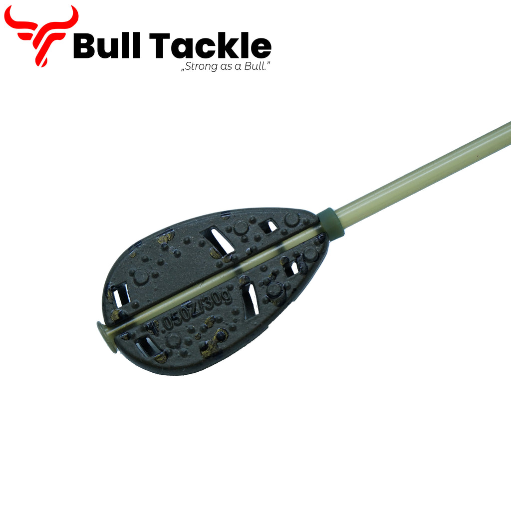 Egyesíti a lapos, feeder kosarak, illetve a távdobó, gubanc gátló csővel ellátott etetőkosarak minden előnyét. Az alsó ólomnak köszönhetően a fenékre mindig „talpára esik", így az etetőanyag és a csali mindig fölfelé néznek.